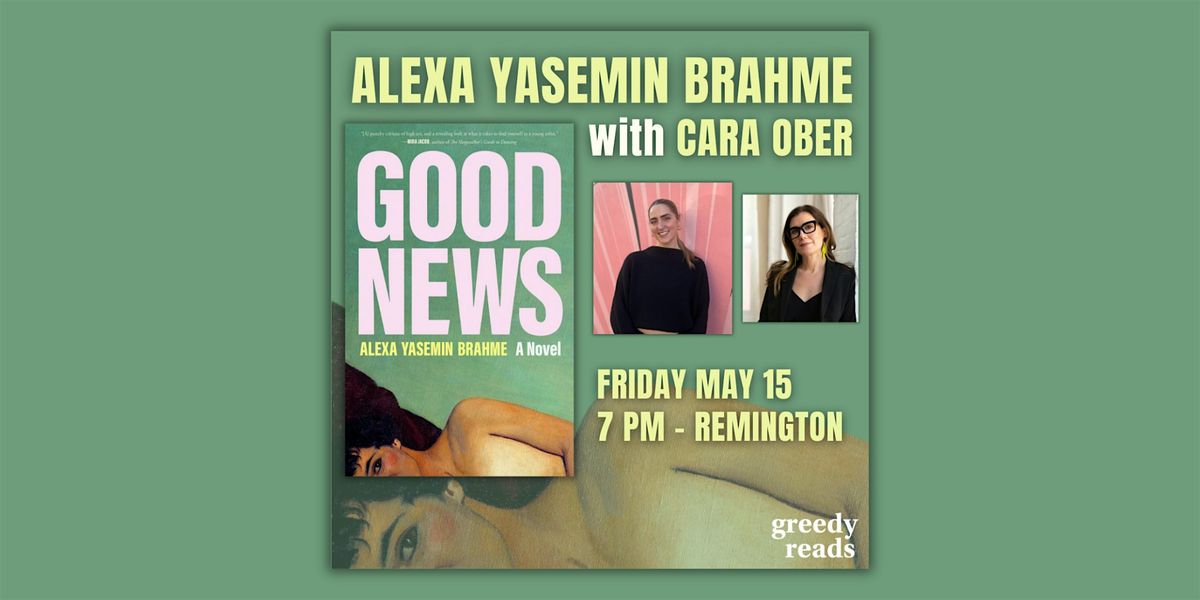 Join us on Friday, May 15, in Remington to celebrate the release of Alexa Yasemin Brahme's new novel, Good News! Alexa will be in conversation with Cara Ober from BmoreArt.