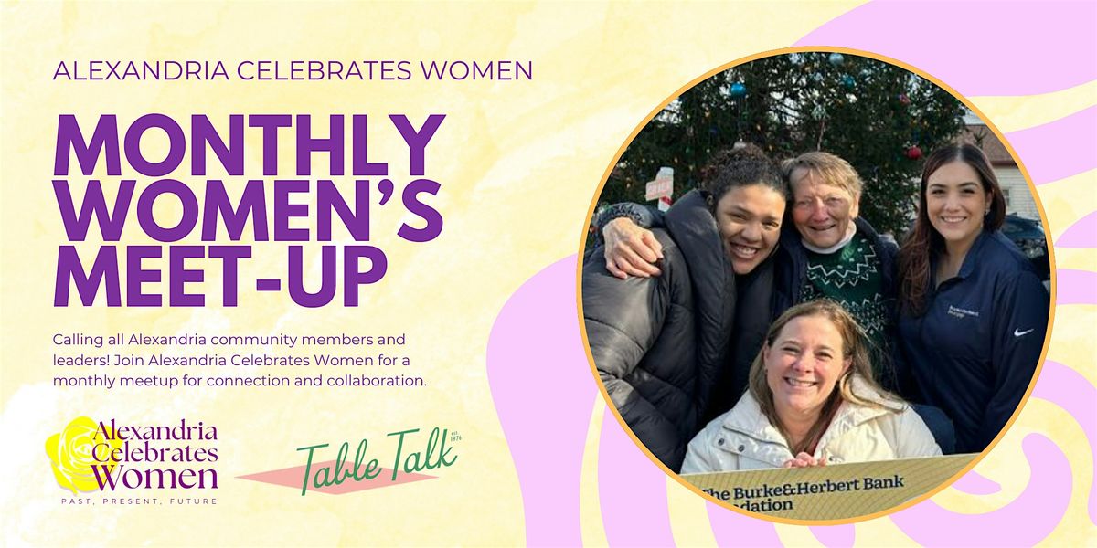 Join Alexandria Celebrates Women on Wednesday, April 22 at Table Talk for our April Meetup. This month's guest speaker TBA!