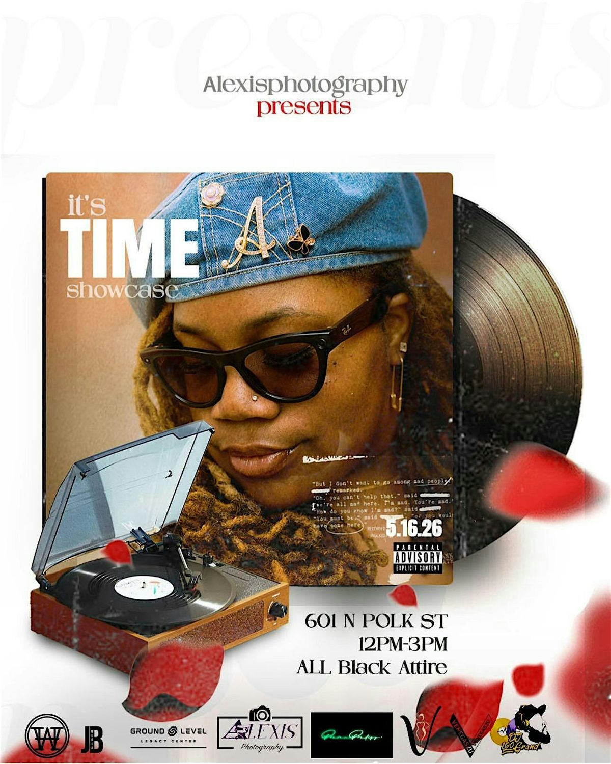 Welcome to Alexis Photography Present It's Time Showcase happening at Ground Level Legacy Center on May 16, 2026 at 12:00 PM (Eastern Time)! 📸 Get ready for a day filled with stunning photos, creative inspiration, and networking opportunities. Whether you're a photography enthusiast or just looking for some visual inspiration, this event is perfect for you! Don't miss out on this chance to see the world through the lens of talented photographers. See you there! ALL BLACK ATTIRE