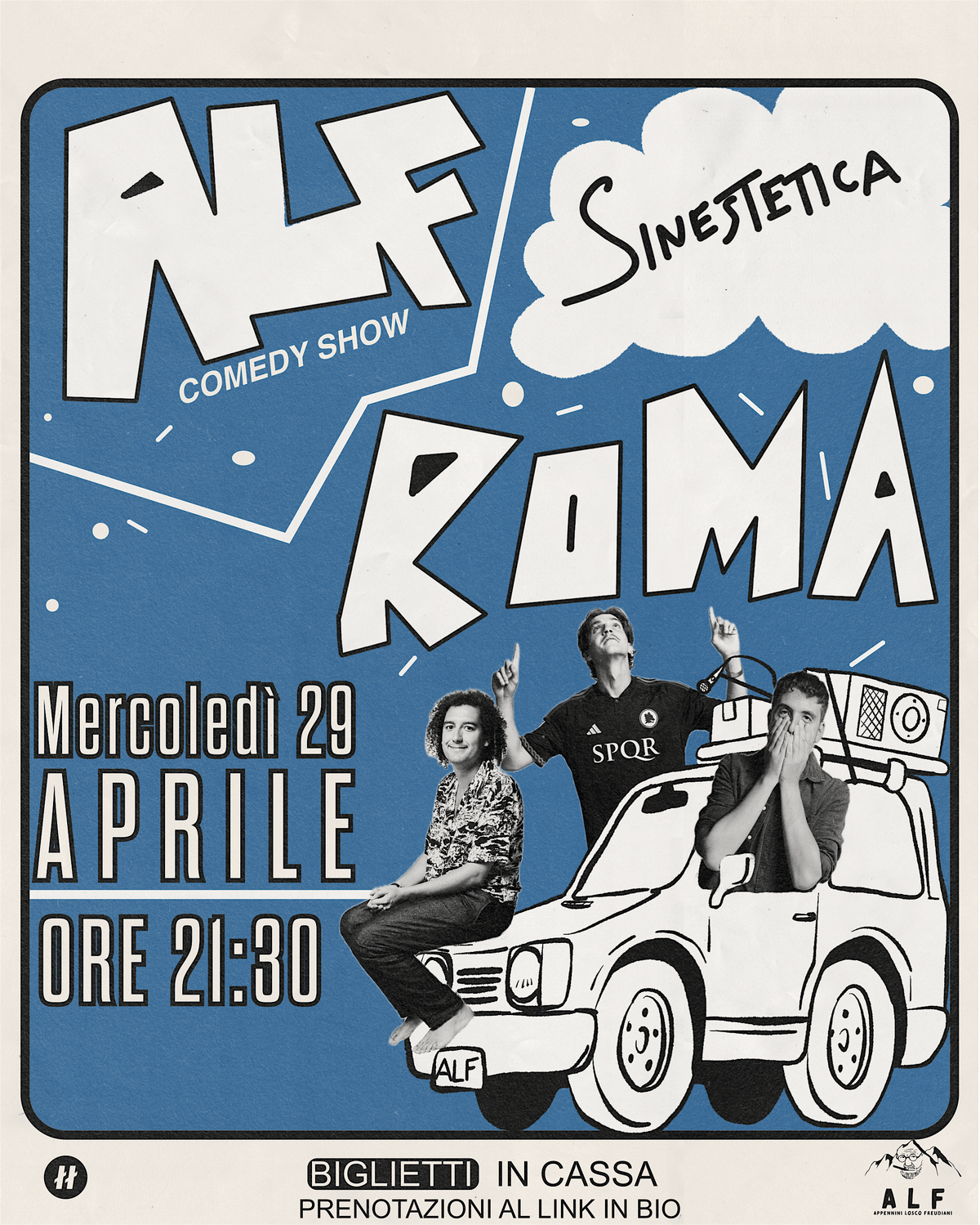 🎤 Un trio di autori comici si alternano sul palco portando monologhi di stand up comedy e proiezioni video.
