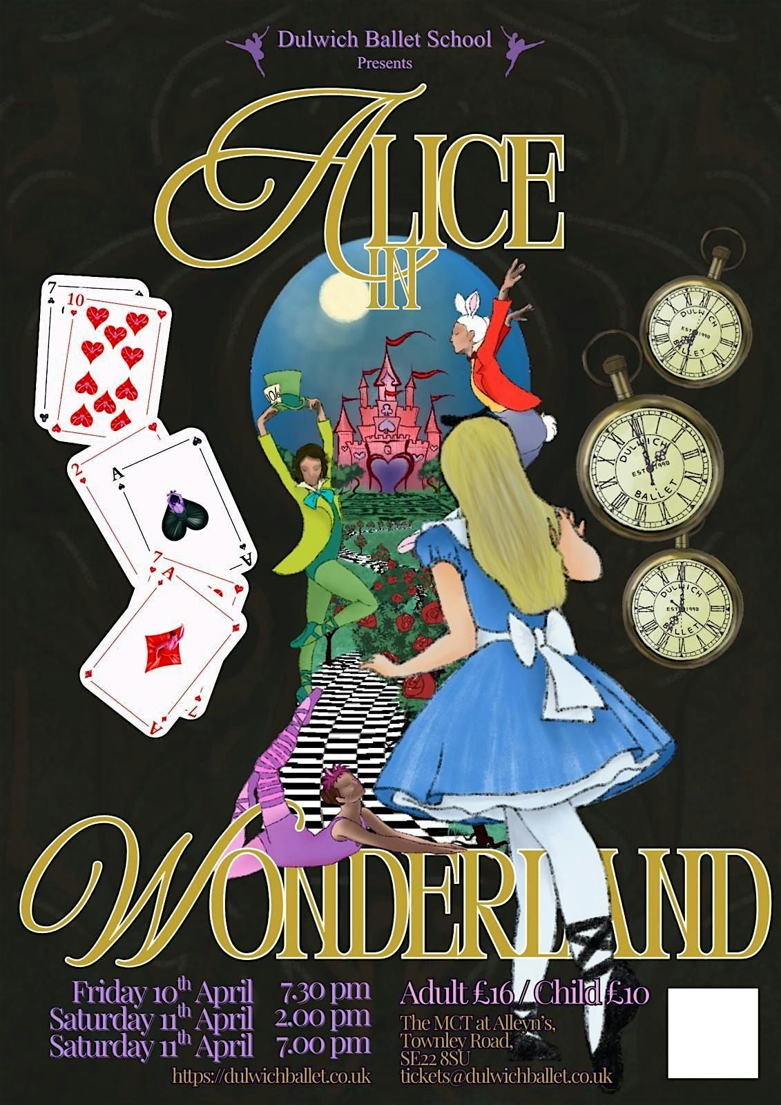 Come and join us as we meet Alice, her sisters and friends. Marvel as she follows the White Rabbit down the Rabbit Hole into Wonderland, where she meets the Mad Hatter, Cheshire Cat, Caterpillar and Tweedle Dum & Tweedle Dee. Watch the fun and games of the Croquet Match and enjoy the Queen of Hearts’ misfortune with those tarts!