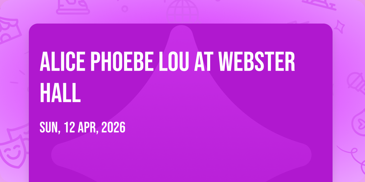 β¨ Embark on an extraordinary journey at Alice Phoebe Lou at Webster Hall, where every moment promises to be unforgettable! π Imagine of transforming Webster Hall in the heart of New York, NY into a realm of endless possibilities. π Join us on April 12th, 2026 at 08:00 PM for an experience that will challenge your imagination and exceed your expectations. π― This carefully curated event combines the finest elements of entertainment, innovation, and community spirit. Whether you're an adventure seeker, culture enthusiast, or someone looking for unique experiences, this event offers something special for everyone. π Don't miss this chance to be part of something extraordinary!