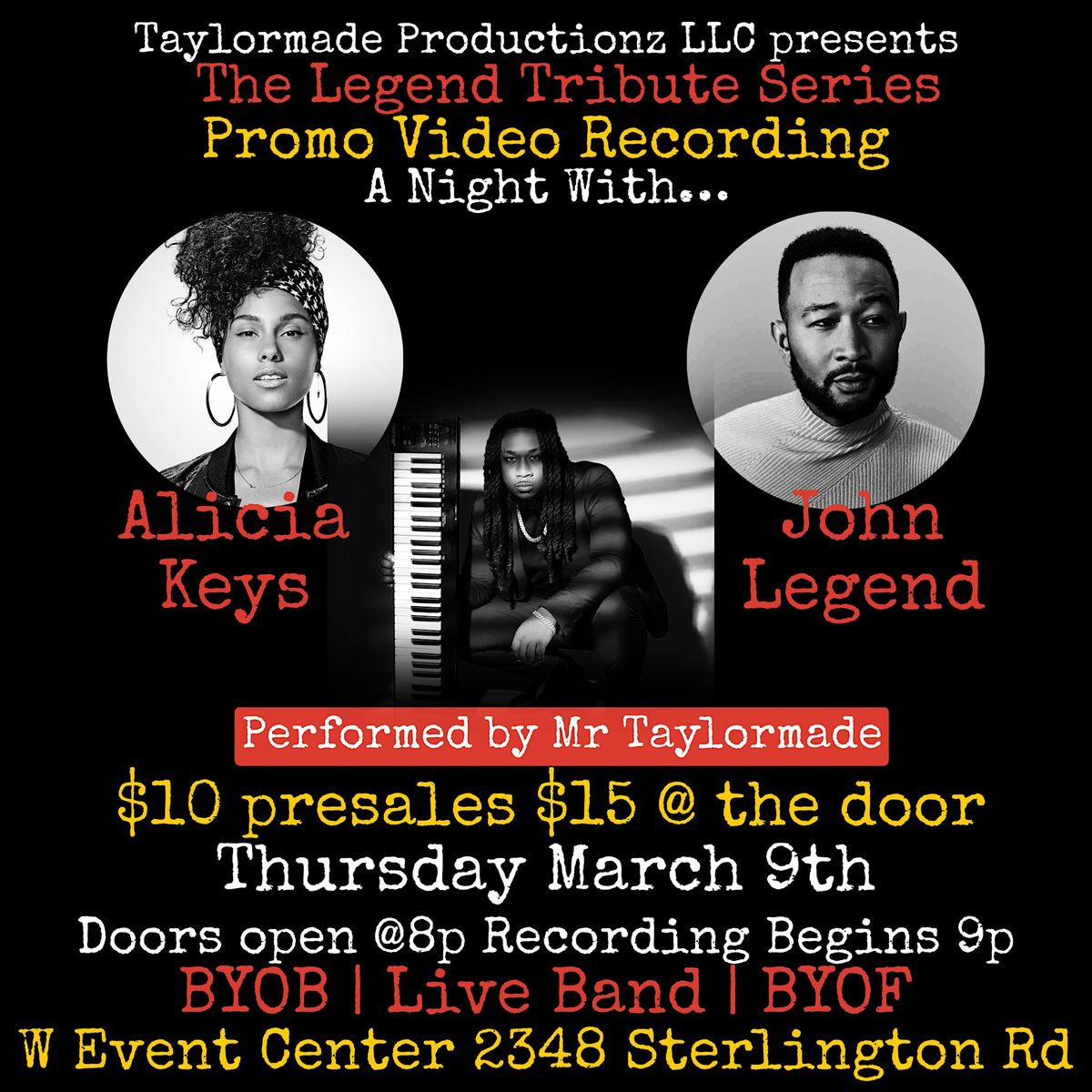 Come enjoy your favorite Alicia Keys and John legend Songs with a "Taylormade" Twist!!!