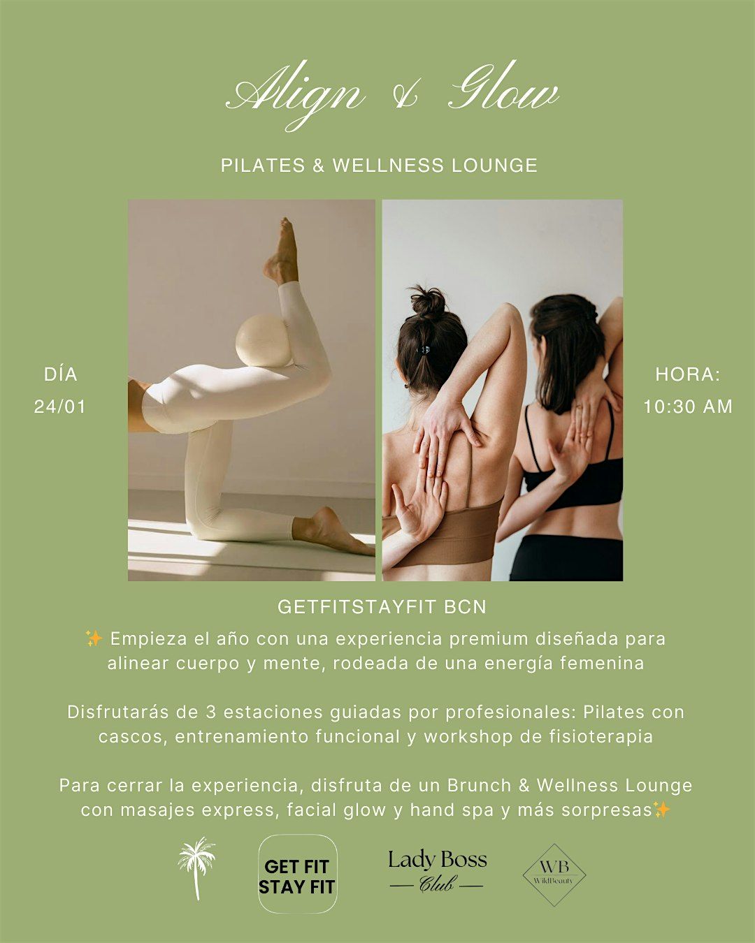 Empieza el año con Align & Glow Experience, una experiencia premium diseñada para mujeres que quieren cuidarse, moverse con intención y rodearse de una energía bonita, femenina y muy wellness ✨