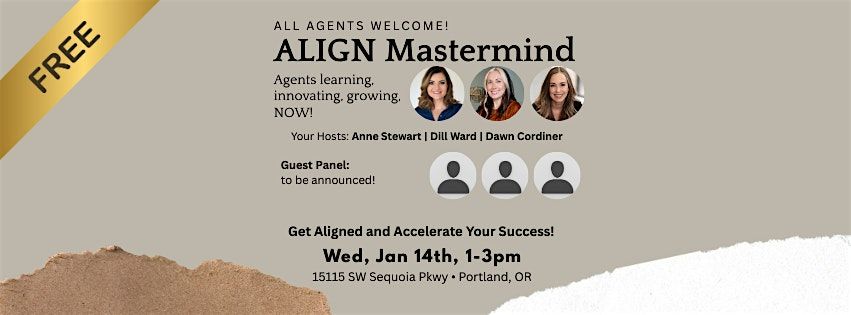 All agents welcome! Join us for a FREE conversation with agents working in the business & crushing it! Get Aligned!