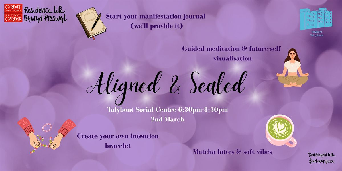 Ymunwch â ni ar gyfer Aligned & Sealed yng Nghanolfan Gymdeithasol Taly — noson greadigol glyd, greadigol sy'n ymwneud ag ailosod, myfyrio a rhamanteiddio eich hunan yn y dyfodol. Byddwch yn cael eich tywys trwy ddechrau eich dyddiadur amlygu eich hun, cymryd rhan mewn myfyrdod byr yn y dyfodol, a gwneud breichled bwriad i selio'r egni.