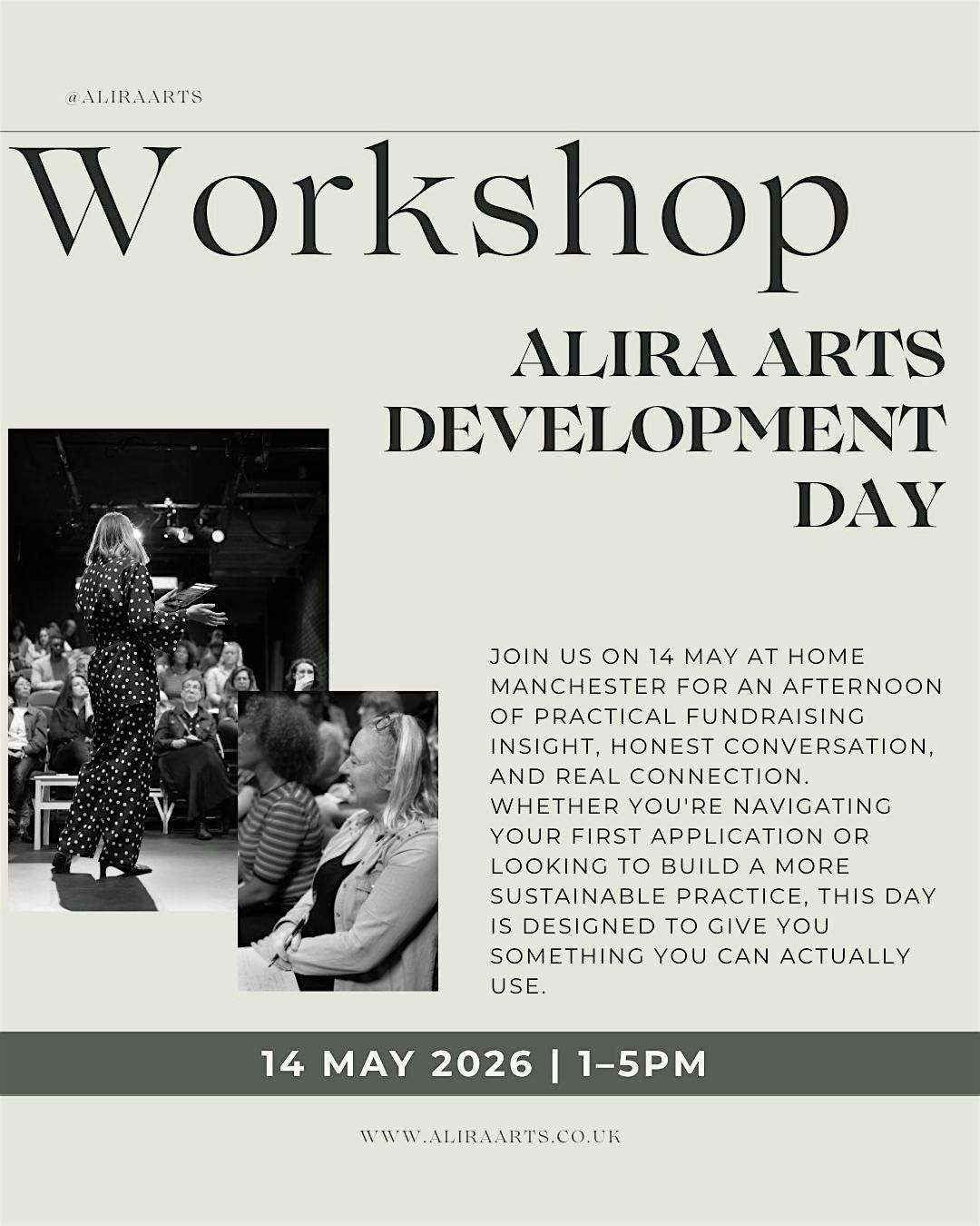 Join Alira Arts for our first ever Development Day - a practical afternoon for artists, arts workers, and small organisations who want to get serious about fundraising, audiences, and building a sustainable practice.
