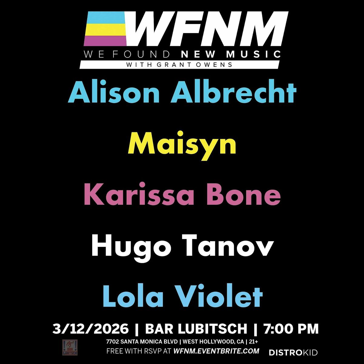 WFNM's use of your personal information includes sharing your personal information to WFNM's performers. WFNM and its performers may use your personal information to send you event updates, marketing, and related communications. WFNM is not responsible for the performers' use of your personal information. Performers must follow all applicable privacy laws related to the use of your personal information.