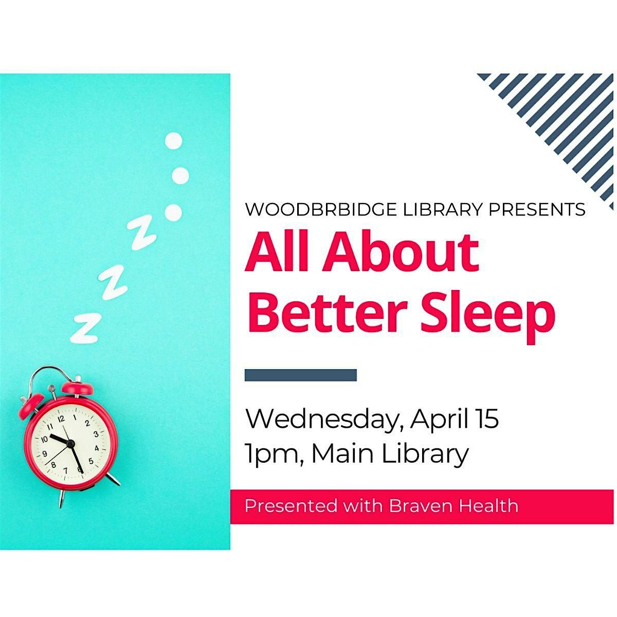 We'll discuss how sleep habits may change with age, why sleep is important for health, how much is needed to maintain optimal health and tips to get a better night’s sleep on April 15 at 1PM at the Woodbridge Main Library.
