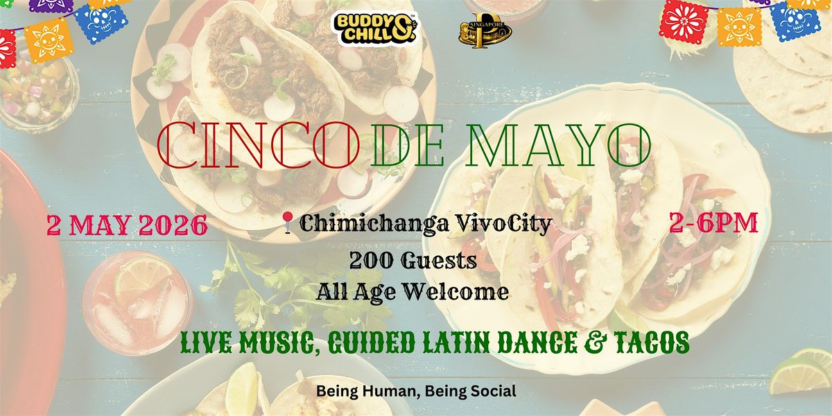 On Saturday, 2 May 2026, we’re taking over Chimichanga VivoCity for a Cinco de Mayo afternoon fiesta packed with live music, DJ beats, guided Latin dance, good food, and 200 good people.