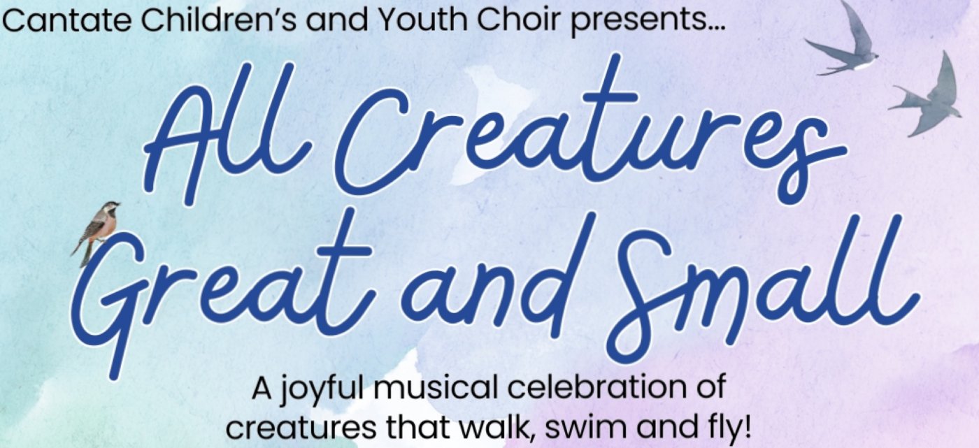 Cantate Children’s and Youth Choir will present its annual spring concert, “All Creatures Great and Small,” on Sunday, May 3, 2026, at 4:00 PM at St. John’s Episcopal Church, 205 Elmwood Avenue, Lynchburg, VA 24503.