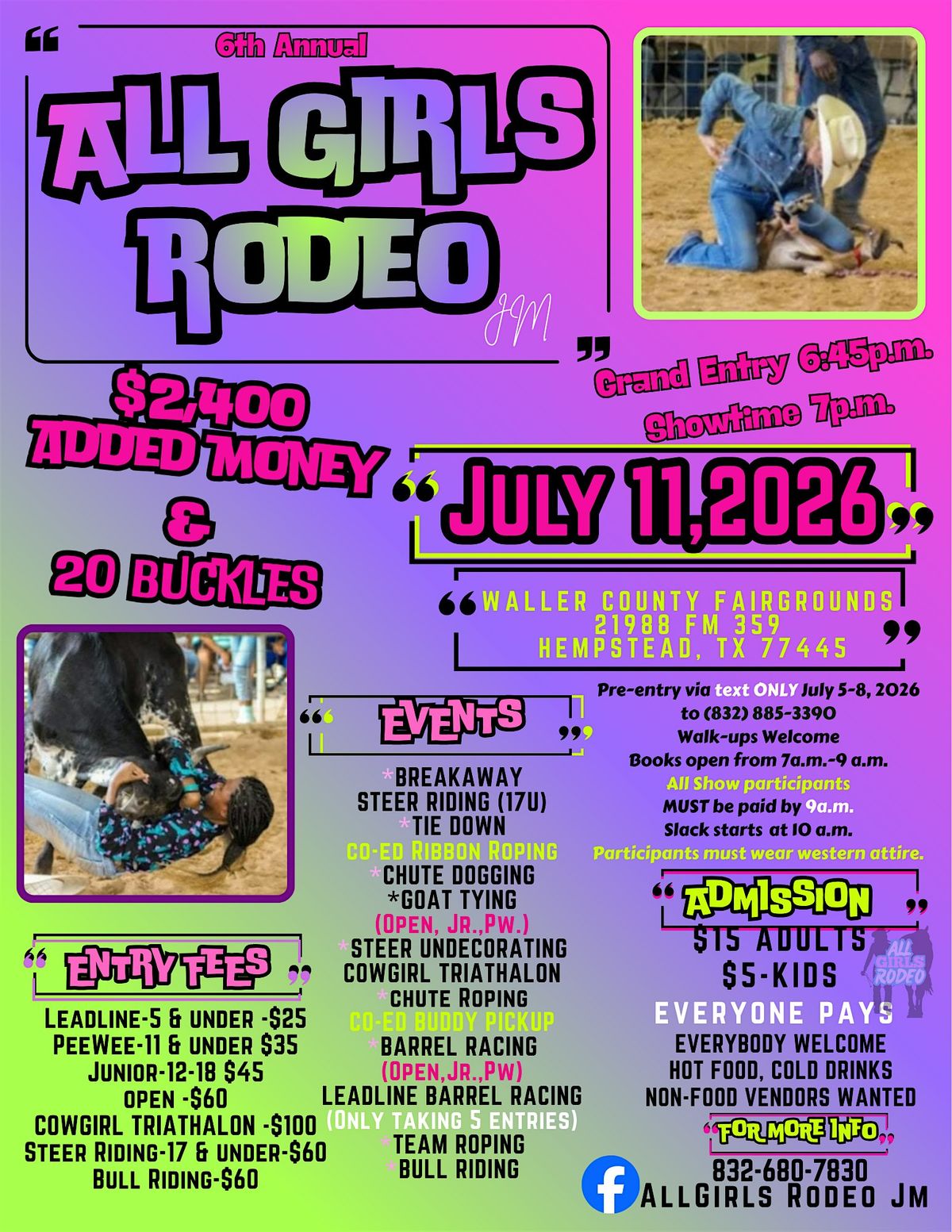The Girliest Show on Dirt is back again for our 6th annual rodeo event come see some of the toughest girls around get down and dirty!