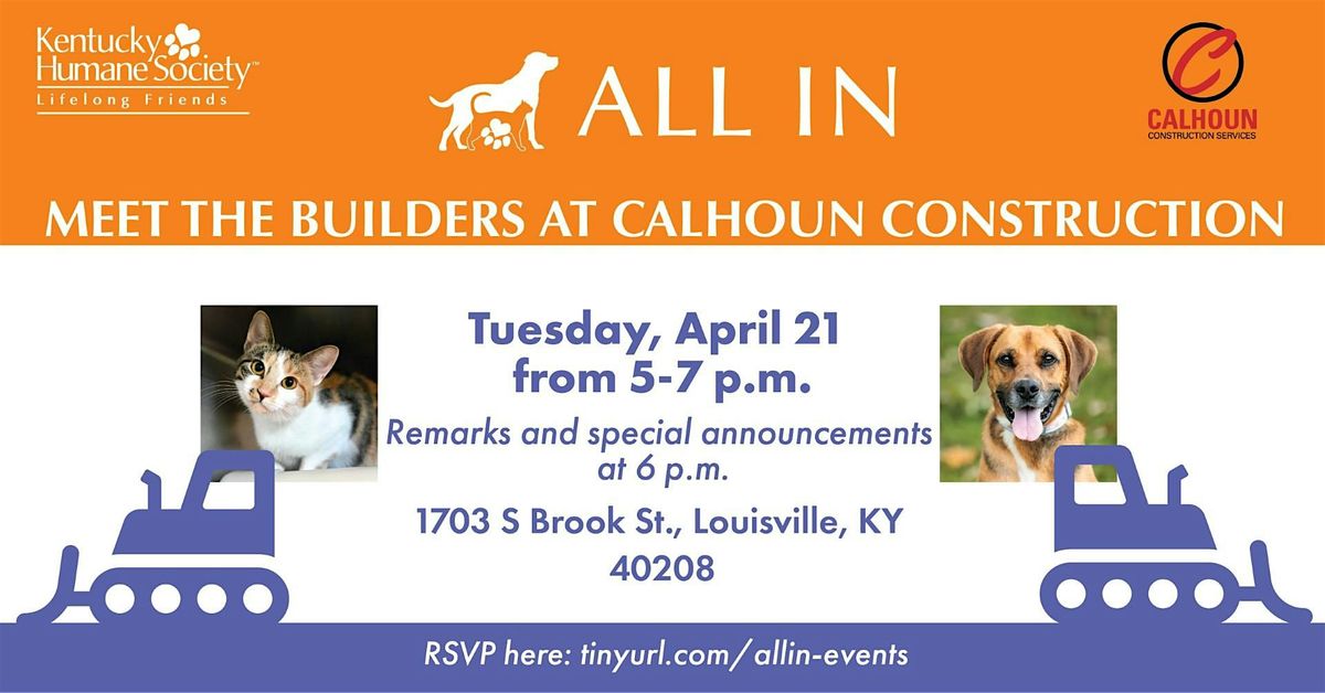 Meet the builders at Calhoun Construction! Remarks and special announcements will be at 6PM.