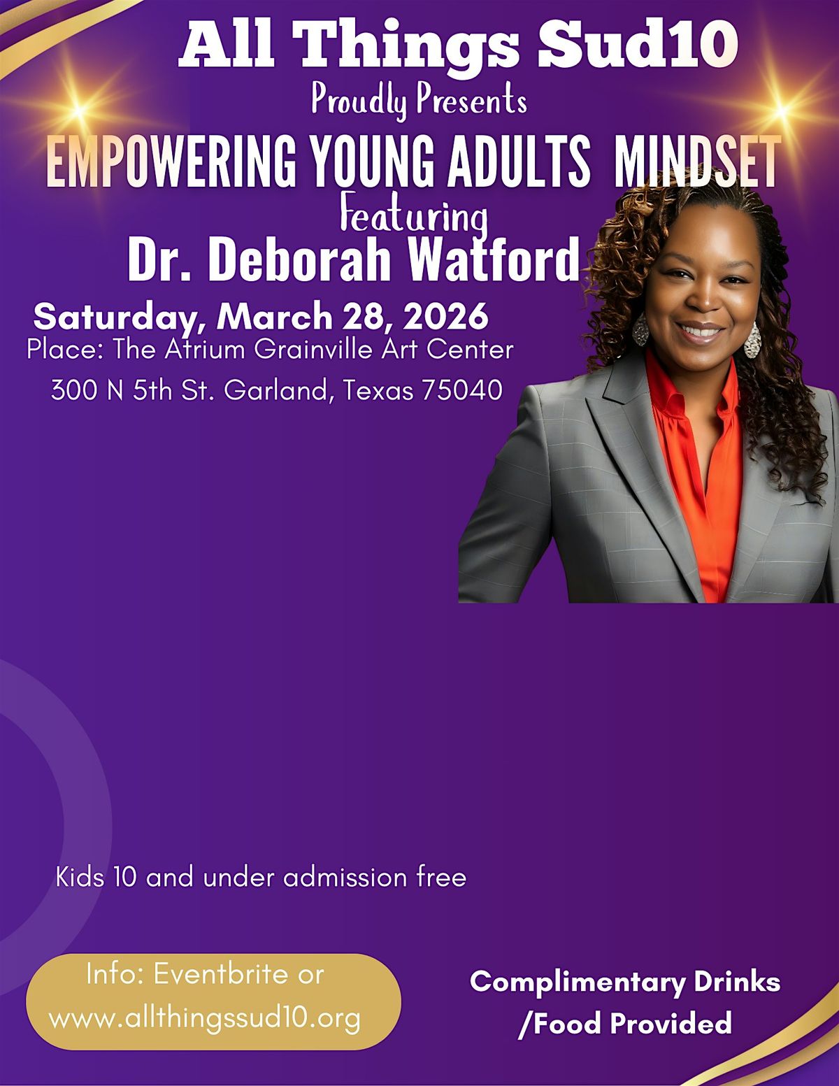 Get ready to boost your confidence and unlock your potential at All Things Sud10’s Empowering Young Adults Mindset event! Join us in person for a day packed with inspiring talks, actionable tips, and uplifting vibes designed to help young adults thrive. Connect with like-minded peers, grow your mindset, and walk boldly into your purpose. Don’t miss this chance to empower your mind and take charge of your future!
