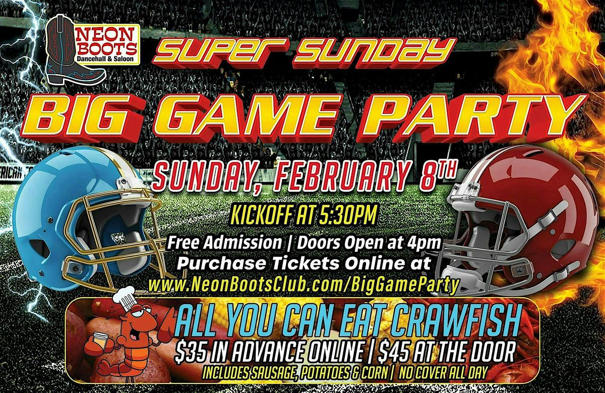 ALL-YOU-CAN-EAT CRAWFISH & BIG GAME WATCH PARTY at Neon Boots!