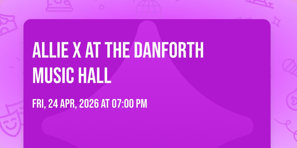 β¨ Discover the extraordinary at Allie X at The Danforth Music Hall, where magic meets reality in ways you've never imagined! ποΈ Set in The Danforth Music Hall nestled in bustling Toronto, ON, this event promises to be a landmark occasion. π Taking place on April 24th, 2026 at 07:00 PM, it's going to create an atmosphere where every moment becomes a cherished memory. π Immerse yourself in an experience crafted with attention to every detail, designed to surprise and delight at every turn. They have worked tirelessly to ensure this event exceeds all expectations, bringing together elements of entertainment, innovation, and pure joy. π Don't miss your chance to be part of this remarkable journey!