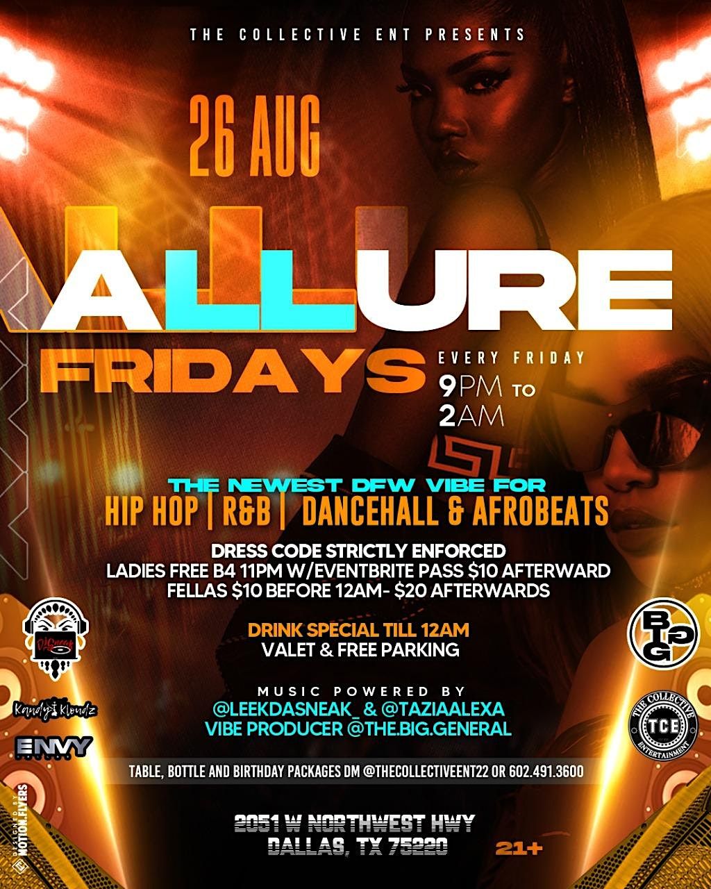 TC Entertainment presents Allure Fridays. Envy formally known as Jamie’s Nightclub has amazing aesthetics, & a great atmosphere! Come vibe!About this Event