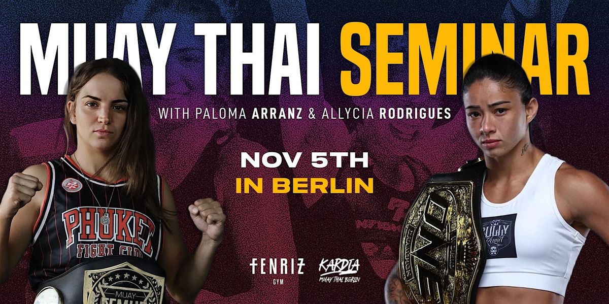 Fenriz Gym Berlin is proud to host an exclusive Muay Thai seminar with two of the most inspiring female fighters in the sport today: Allycia Rodrigues and Paloma Arranz.