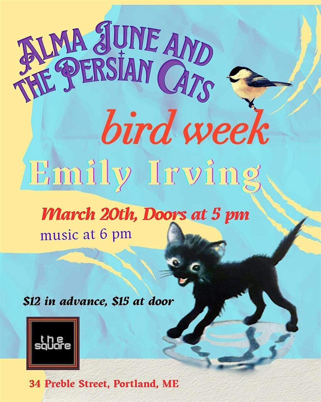 Join us at [the square] as we kick off a northeast tour featuring Alma June and the Persian Cats + Bird Week, including stops in Providence, Allston, and Brooklyn!