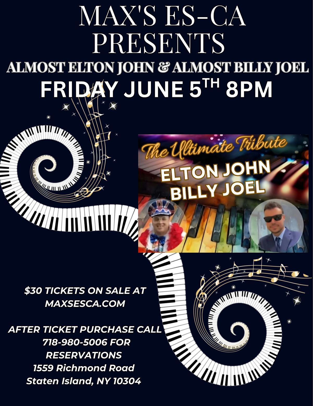 Come join us for a night of incredible music at Max's Es-ca on June 5, 2026 at 8:00 PM (Eastern Time)! Get ready to sing along to all your favorite hits by legendary artists. It's going to be a show you won't want to miss!