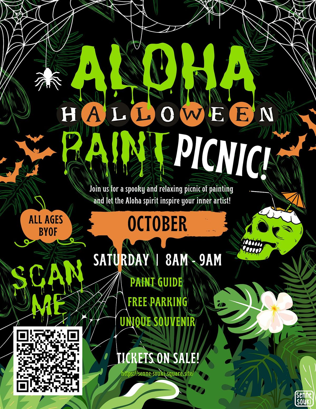 Welcome to Aloha Halloween Paint Picnic! Bring your friends and family for a spooky and relaxing picnic of painting with a tropical twist. Unleash your inner artist as we provide all the supplies you need to create a personalized souvenir or gift for any occasion. This event is perfect for all ages and skill levels.