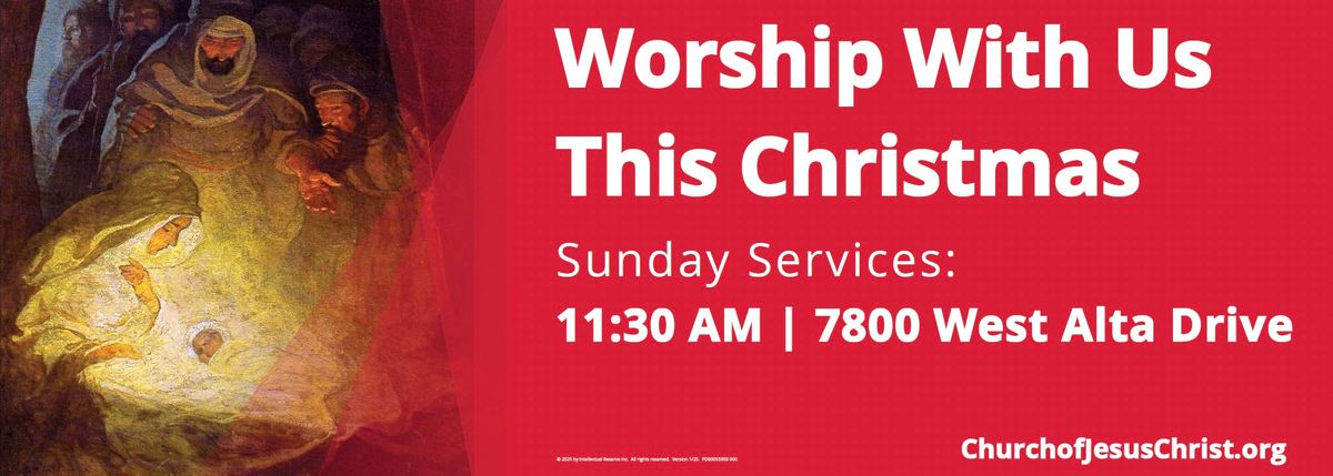Join us this Christmas season as we celebrate and worship our Savior, Jesus Christ. The first hour will include our sacrament service and Christmas program. Durin the second hour, we'll have refreshments and some activities for children.