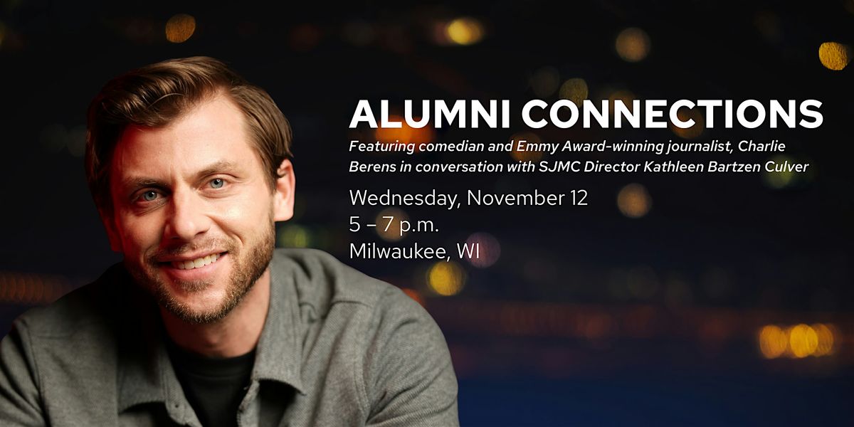 Join us for an evening of networking and nostalgia with the School of Journalism and Mass Communication alumni community! Enjoy hosted food and drinks as well as a special conversation with SJMC Director Kathleen Bartzen Culver and alumnus Charlie Berens (BA'09), the Emmy-winning journalist and comedian behind the Manitowoc Minute. Together, they’ll dive into a timely (and lively!) conversation about how to build demand for real journalism in a world that rewards polarization.