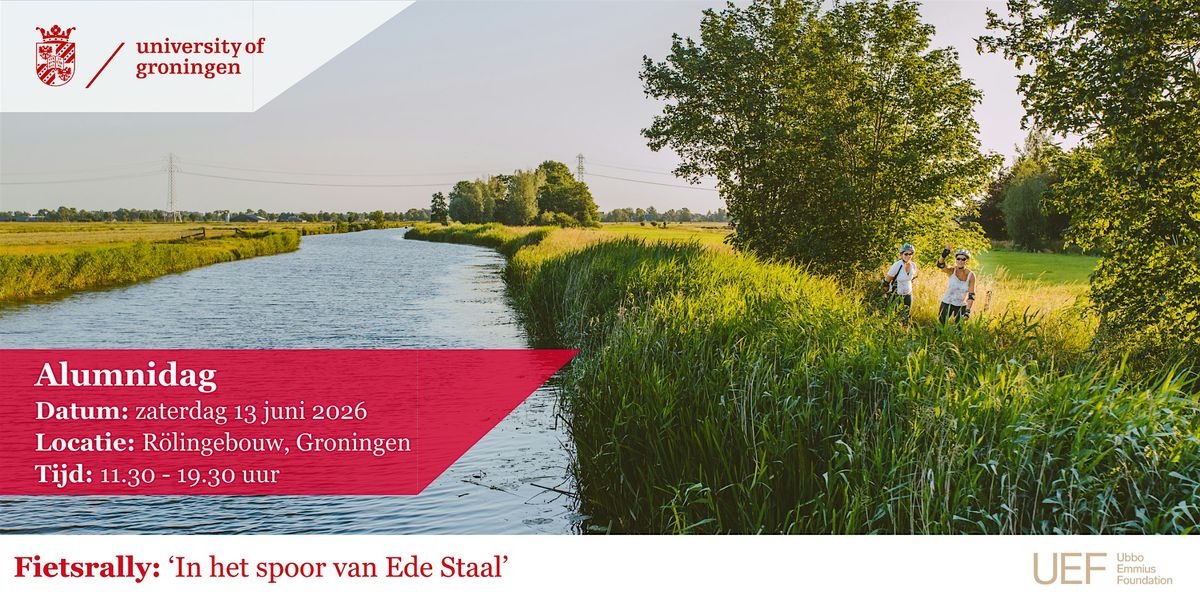 Net als vorig jaar, zal deze alumnidag ook een sportief karakter hebben. Met een heuse fietsrally, toeren we door het Hogeland van Groningen. De rally is niet alleen een sportieve tocht, maar ook een verhalende reis door het leven en de ziel van Ede Staal, bekende Grunninger en alumnus van de RUG. Afsluitend is er een uitgebreide borrel waar TikTok Tammo ons zal entertainen.