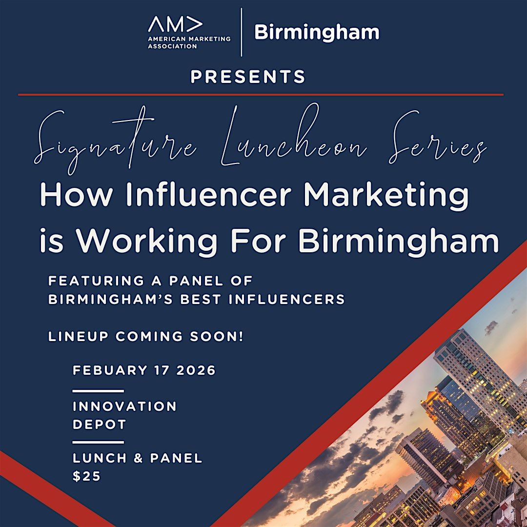 At this AMA Birmingham luncheon, we’re hosting a moderated roundtable with local Birmingham influencers who actively work with brands in our community. This conversation goes beyond follower counts and trends to focus on what influencer marketing actually looks like in practice.