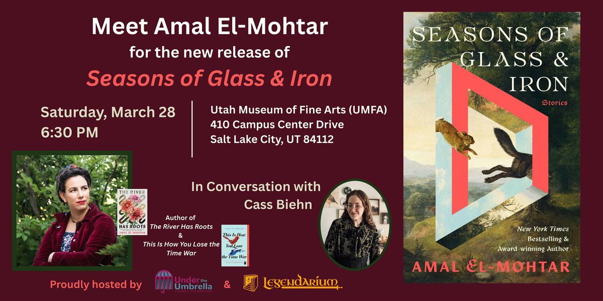 The Legendarium and Under the Umbrella are proud to host Amal El-Mohtar for the release of her new book, SEASONS OF GLASS & IRON!