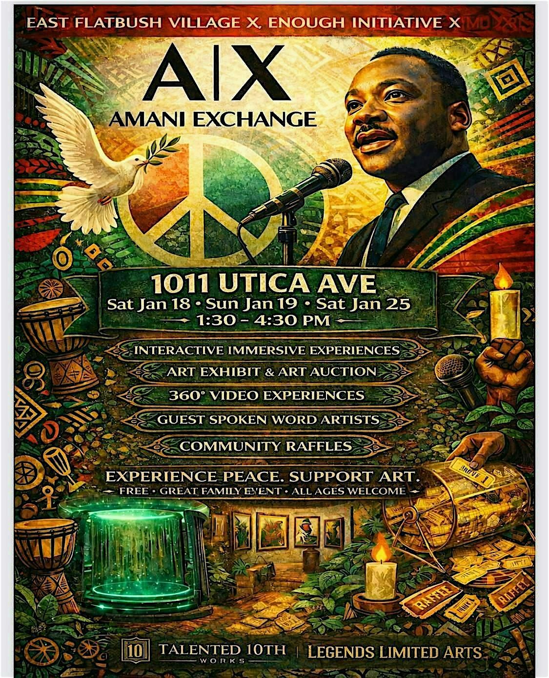 Info: The Amani Exchange is a monthly cultural infrastructure model that transforms peace, nonviolence, and Black diasporic oratory into live, immersive, and community-supported experiences.