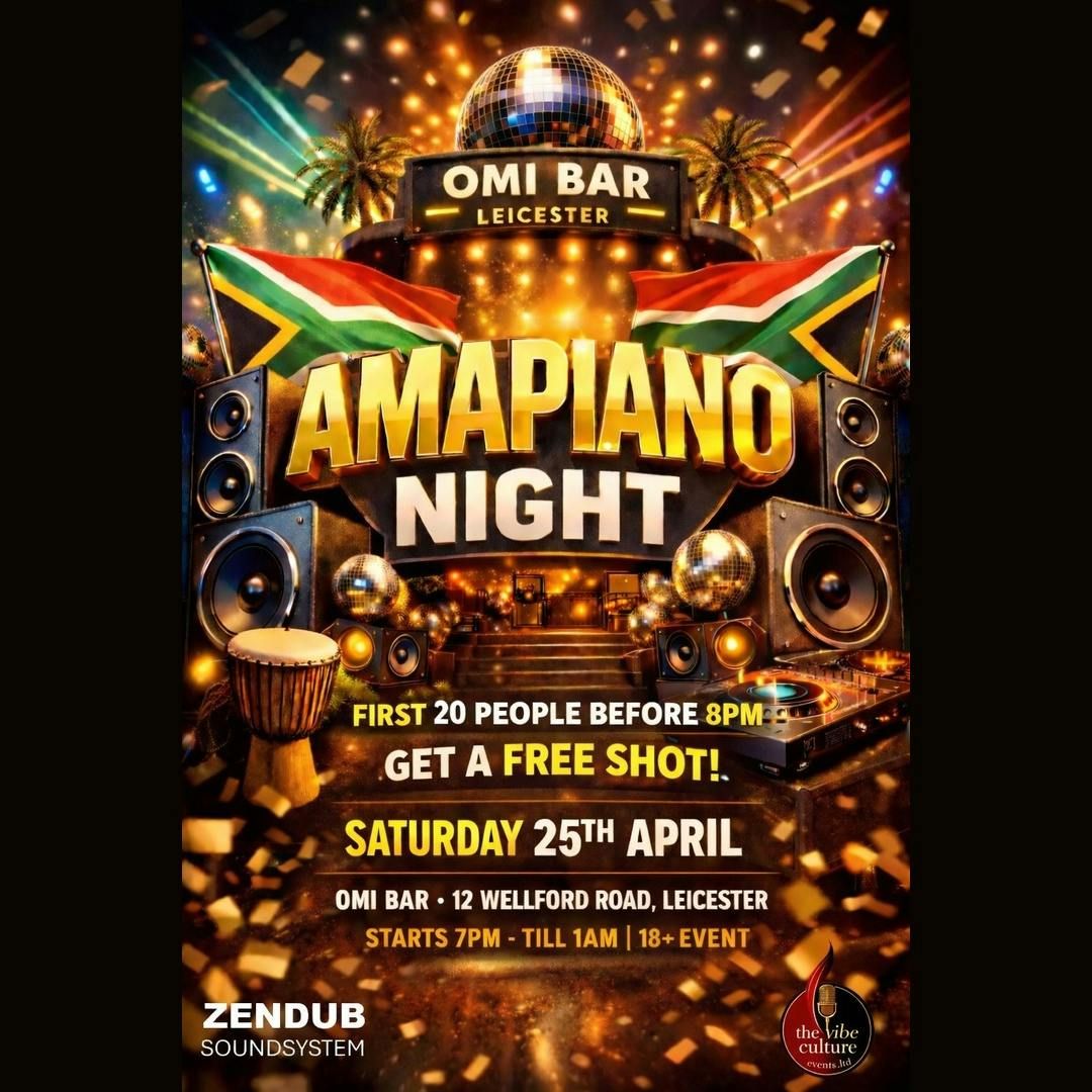 YO LEICESTER — the Piano is coming to your city and it is going to be MASSIVE!! 🔥ZENDUB Soundsystem and The Vibe Culture Events have linked up to bring you something truly special — Amapiano Night at Omi Bar on Saturday 25th April, 7 PM till 1 AM, and entry is absolutely FREE. No cap. FREE!