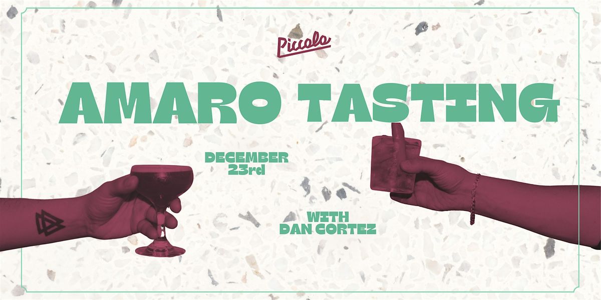 Join us at Piccolo on Tuesday, December 23 at 6 pm for a two-hour Amaro Tasting led by our bar manager, Dan Cortez. Dan will guide you through a curated lineup of Italian and modern amari, exploring how they are made, how to taste them, and how to work them into cocktails and after-dinner service.