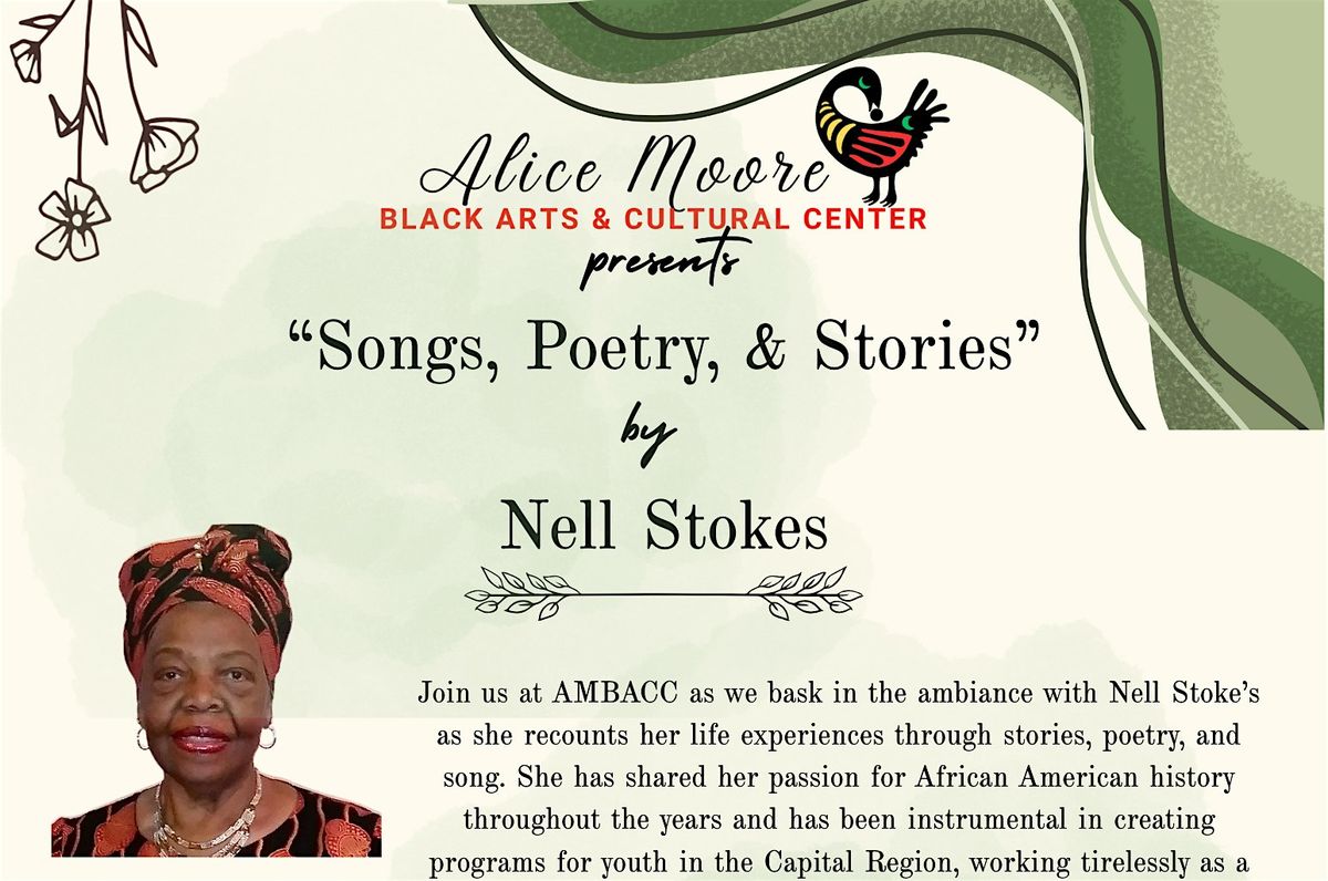 Join us at AMBACC as we bask in the ambiance with Nell Stoke’s as she recounts her life experiences through stories, poetry, and song. She has shared her passion for African American history throughout the years and has been instrumental in creating programs for youth in the Capital Region, working tirelessly as a volunteer and activist. The Albany Institute of History & Art mounted an exhibit of her work entitled "Nell Stokes: Stories Education Advocate" in 2024 An oral interview with Nell is on the Institute’s website:albanyinstitute.org.