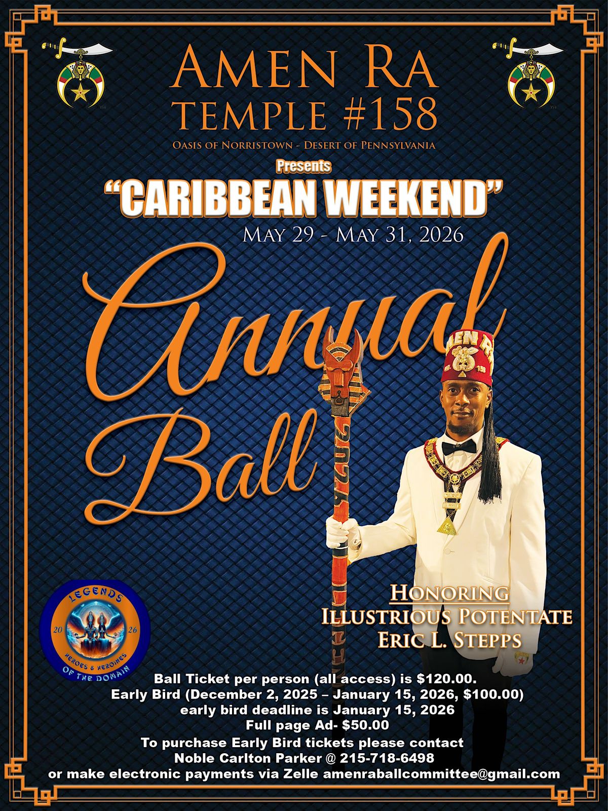 Friday Evening: 7:00 PM – 11:00 PM - Amen Ra Temple 158 presents “Palm Trees and Paradise” (Caribbean Dress)