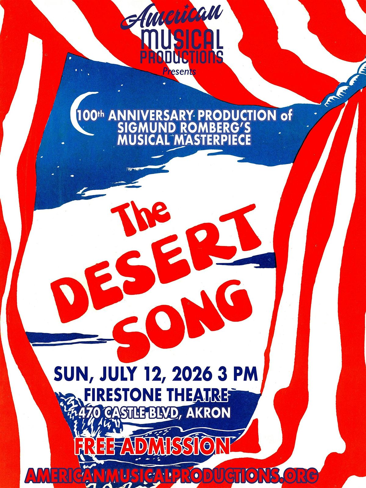 First time in Akron in 75 years, a 100th Anniversary Production of beloved musical The Desert Song by Sigmund Romberg.