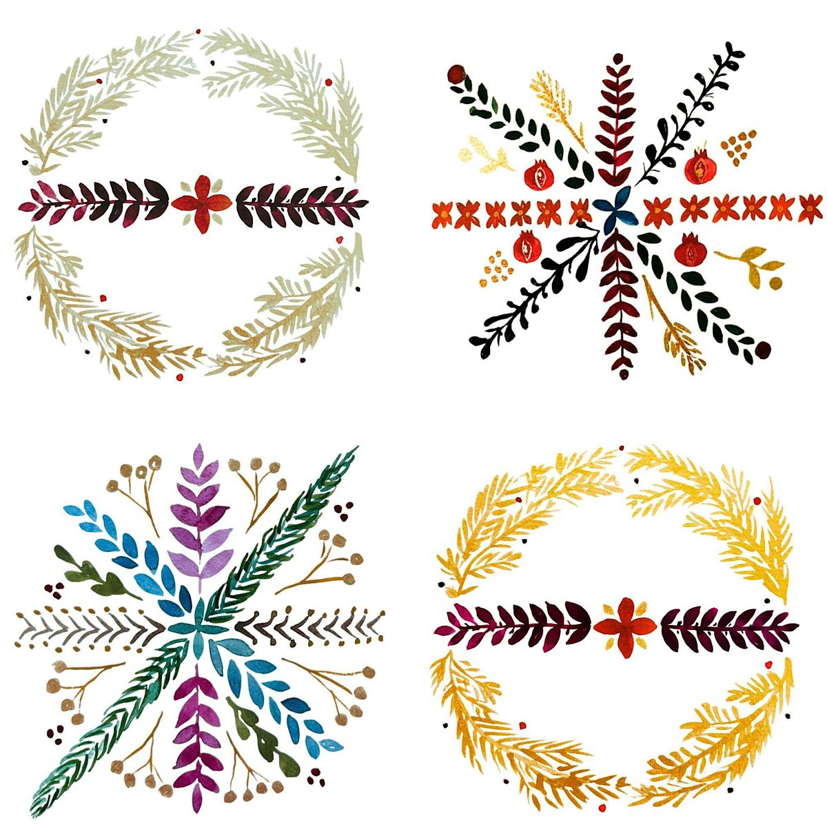 - How to paint natural hex and wreath shapes , symmetrical patterns, stars, florals, fruits, and sprigs of leaves.