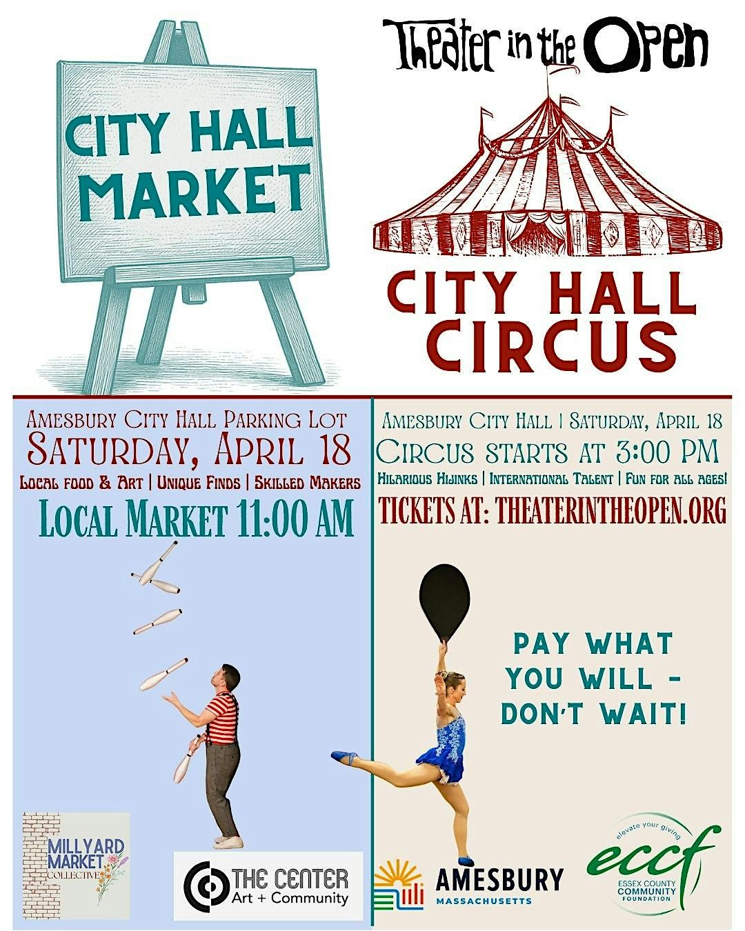 City Hall Circus is a big deal for Theater in the Open, and we're thrilled to be working with some amazing partners to bring it to life. They are excited to partner with the Amesbury Recreation Department and the Mayor's Office in order to access Amesbury City Hall.