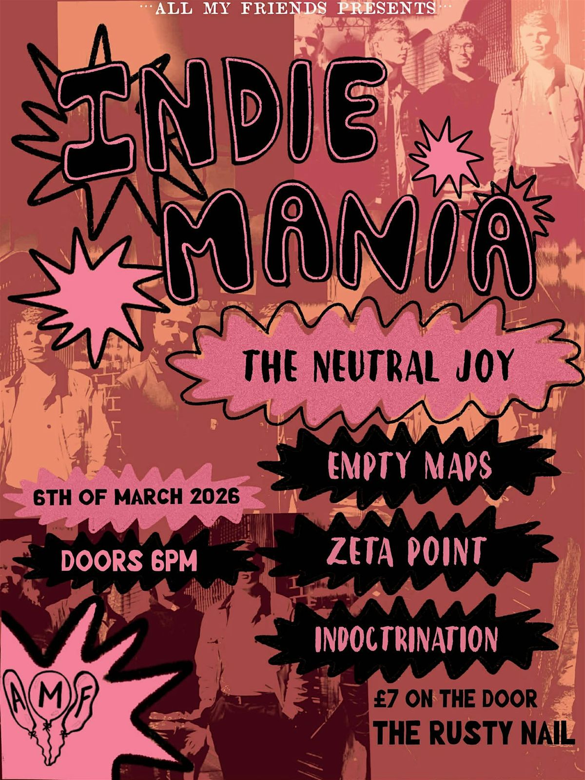 We’re very excited to announce that we will be venturing into new territory as we head to The Rusty Nail for the first time with Aberdeen legends, The Neutral Joy !