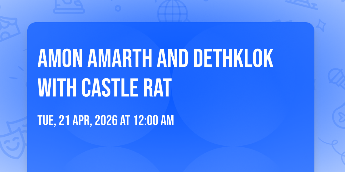 π Location: 35.4663, -97.5038π Journey into wonder at Amon Amarth and Dethklok with Castle Rat, where extraordinary experiences await around every corner! ποΈ Set against the backdrop of The Criterion - OKC in dynamic Oklahoma City, OK, this event promises to exceed all expectations. π Join us on April 21st, 2026 at 12:00 AM for a celebration that combines innovation, entertainment, and community spirit in perfect harmony. β¨ There will be an atmosphere where memories are made and stories come alive, ensuring every guest experiences something truly remarkable. π This is more than just an event; it's a journey into the extraordinary!