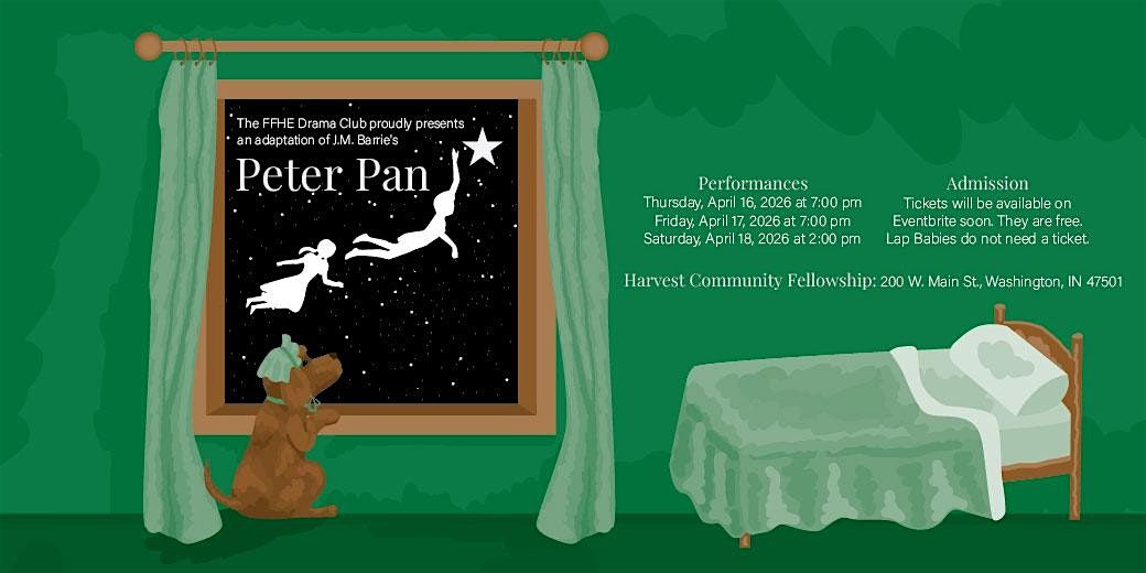 Come and enjoy a fun and magical evening at Harvest Community Fellowship! Experience the timeless story of Peter Pan like never before. Mark your calendar for Thursday, April 16, 2026, Friday, April 17, at 7:00 PM (Eastern Time) or, Saturday, April 18, 2026, at 2:00pm (Eastern Time), and get ready to believe in magic again. Don't miss out on this charming live performance that'll take you straight to Neverland!