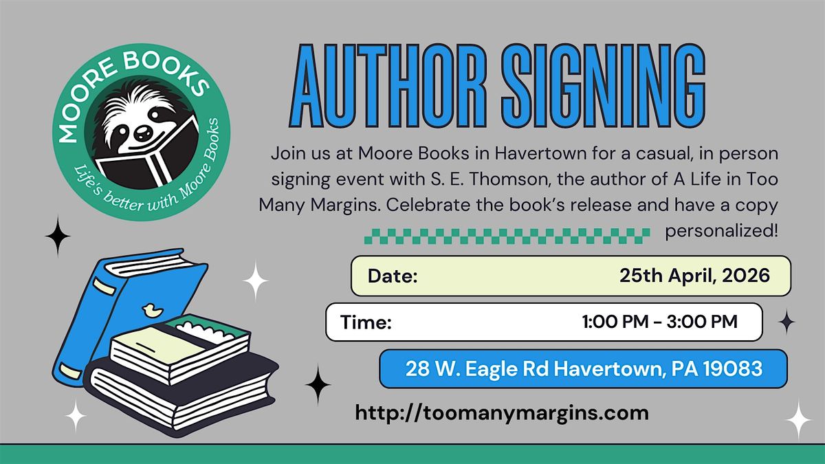Come hang out at Moore Books with author S. E. Thomson for a low-key celebration of their new novel, A Life in Too Many Margins.