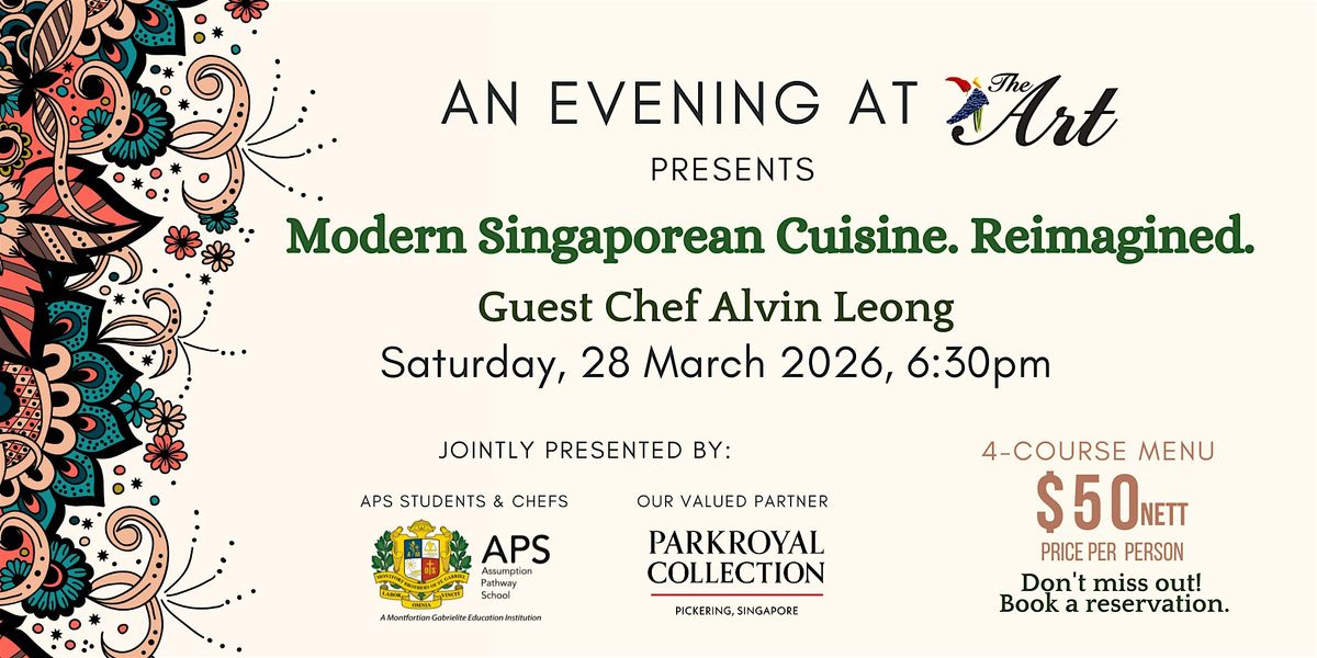 Come join us for a delightful An Evening at The ART featuring a one-night only pop-up where iconic Singaporean dishes take on a new identity — visually transformed, thoughtfully reimagined, yet unmistakably comforting. Get ready for an exciting dining experience as our Special Guest Chef Alvin Leong from PARKROYAL COLLECTION Pickering Singapore together with our young student chefs will showcase an experiential 4-course dinner.