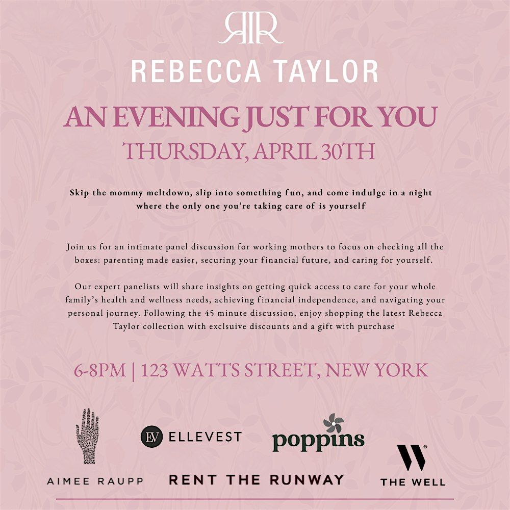 Following the panel, guests are invited to enjoy a private shopping experience of the latest Rebecca Taylor collection, complete with exclusive discounts, light refreshments, and an evening designed to celebrate self-care and community.