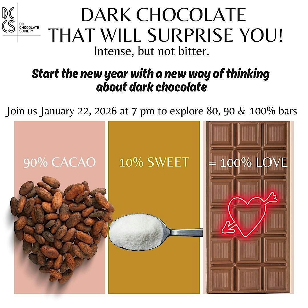 Join us at the January 22 DC Chocolate Society meeting to explore high percentage dark chocolate bars. Plan to taste 80%, 90% & even 100% bars as cacao takes center stage.