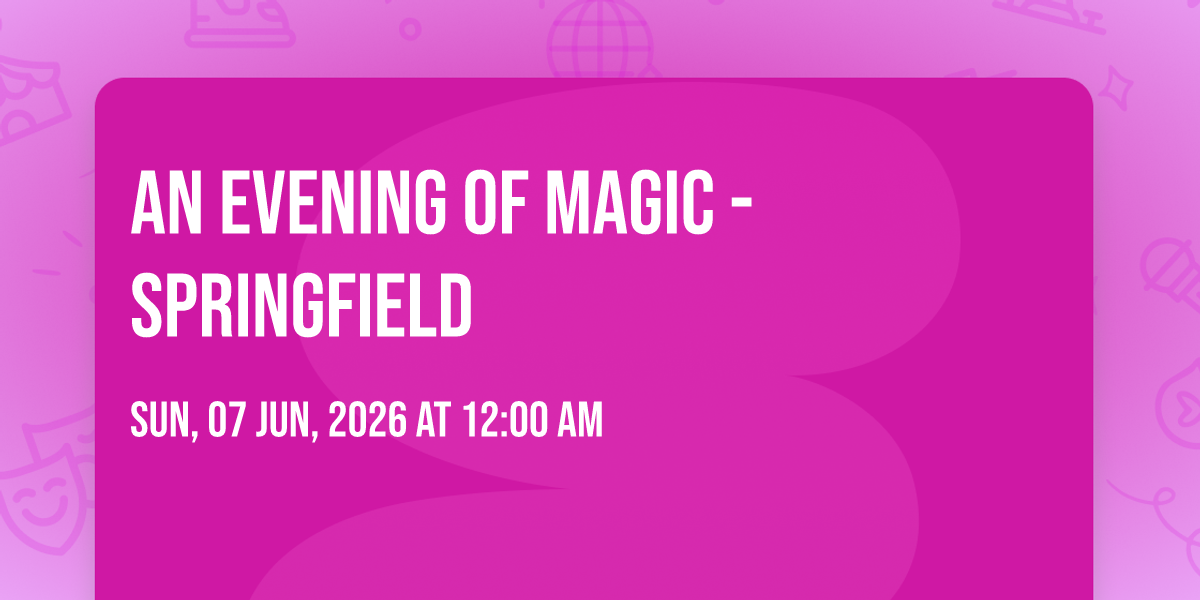 π Location: 39.7977, -89.6476π Prepare to be amazed at An Evening Of Magic - Springfield, the most anticipated gathering of the season! π Set against the stunning backdrop of Hoogland Center for the Arts in vibrant Springfield, IL, this event promises to redefine your expectations. π Mark your calendars for June 7th, 2026 at 12:00 AM and get ready to immerse yourself in an atmosphere of wonder and excitement. β¨ From the moment you arrive, you'll be transported into a world where memories are made and stories come alive. They have crafted an experience that perfectly harmonizes entertainment, innovation, and community spirit. π Join us as we create moments that will be discussed for years!