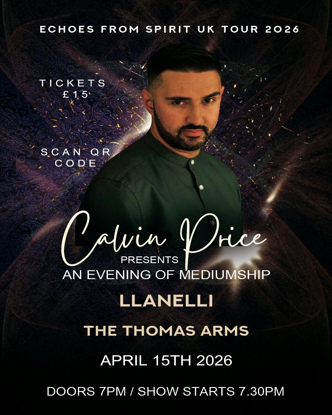 Join UK Renowned Psychic Medium Calvin Price for an unforgettable evening of heartfelt connection to the other side.With warmth, laughter, and moments that move audiences to tears, Calvin delivers messages from Spirit with clarity, compassion, and undeniable presence. Having previously toured with the late Colin Fry and featured as part of Friends of Derek Acorah on social media, Calvin has become a trusted and beloved figure in the spiritual community.