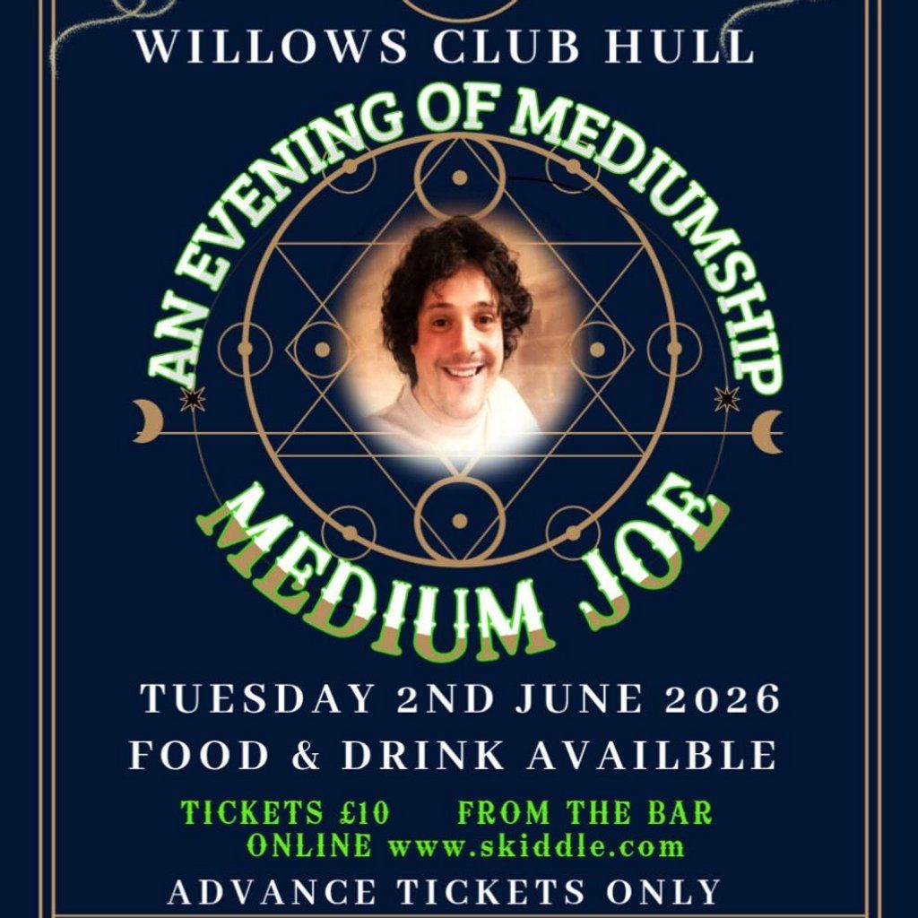 An Evening of Mediumship with Medium Joe.Join us at The Willows Club , for a unique and magical night as Medium Joe connects with the Spirit World