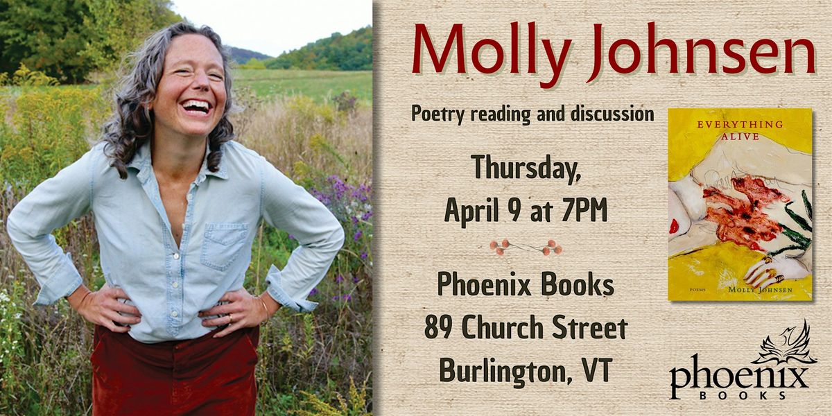 Phoenix Books Burlington is thrilled to host Vermont poet Molly Johnsen for a reading and discussion of her poetry collection, Everything Alive!