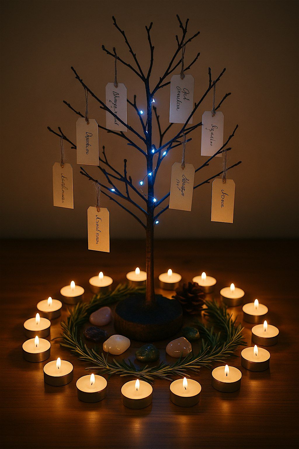 - A shared remembrance altar, where participants may place names or messages and light a candle in honour of loved ones